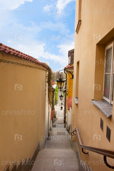 Улица старого города с лестницей, Варшава, Польша