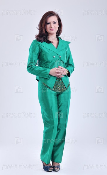 Молодая женщина в брючном костюме в стиле ретро