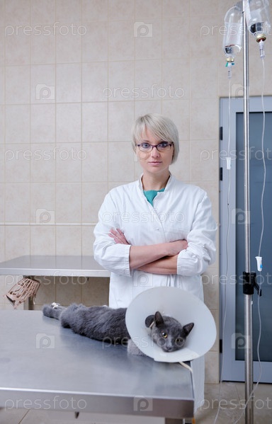 Кошка на лечении в ветеринарной клинике