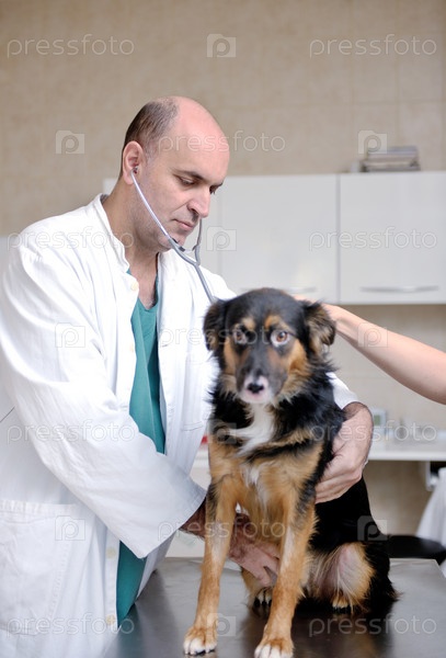 Ветеринар осматривает собаку
