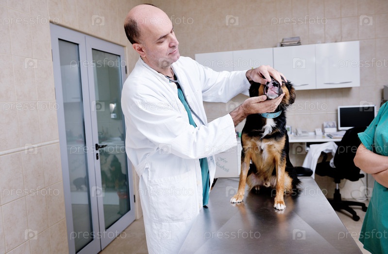 Ветеринар осматривает собаку