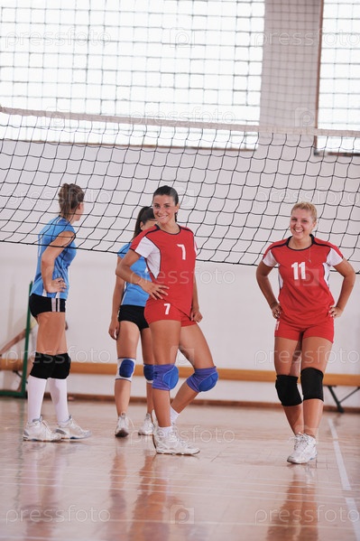 Женщины играют в волейбол в спортивном зале