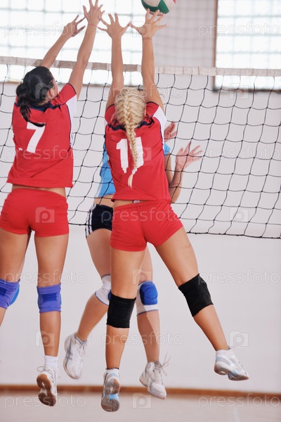 Женщины играют в волейбол в спортивном зале