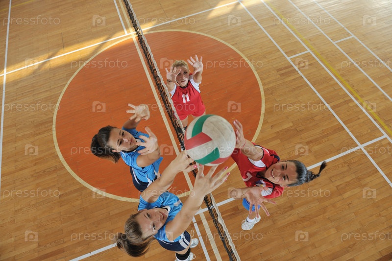 Женщины играют в волейбол в спортивном зале