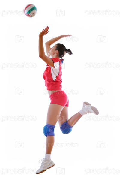 Молодая волейболистка на белом фоне