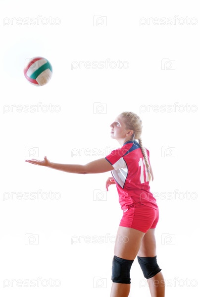 Молодая волейболистка на белом фоне
