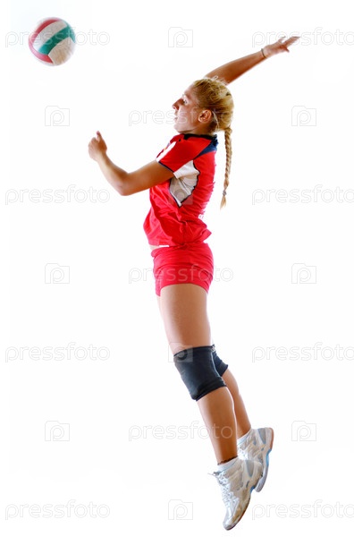 Молодая волейболистка на белом фоне