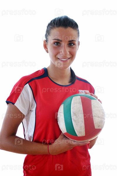 Молодая волейболистка на белом фоне