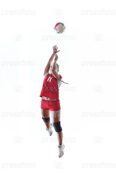 Девушка-волейболистка с мячом на белом фоне
