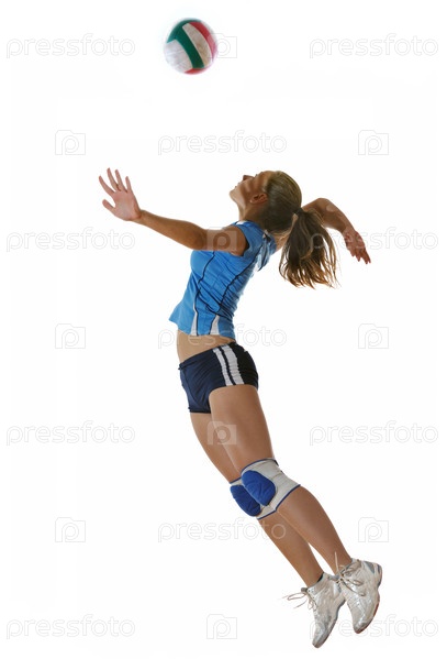 Молодая волейболистка на белом фоне