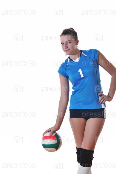 Молодая волейболистка на белом фоне