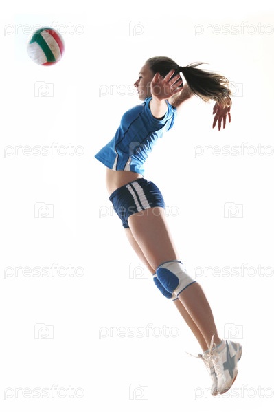 Молодая волейболистка на белом фоне
