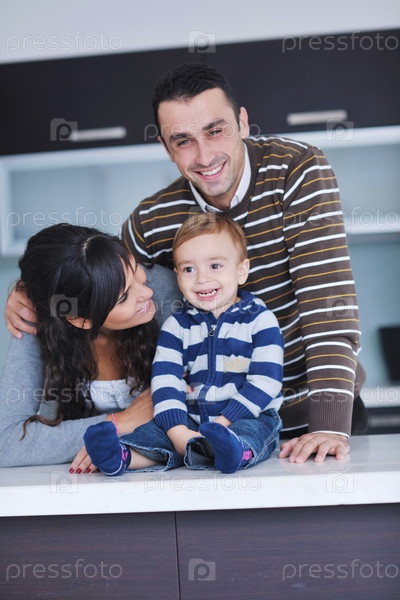 Счастливая молодая семья отдыхает в новом доме