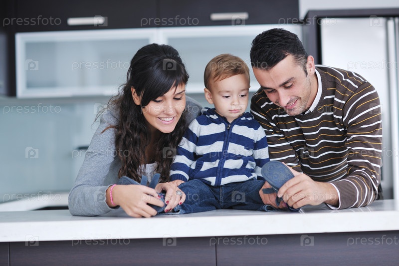 Счастливая молодая семья отдыхает в новом доме