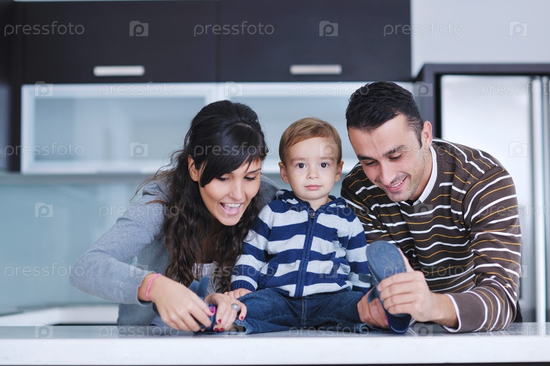 Счастливая молодая семья отдыхает в новом доме