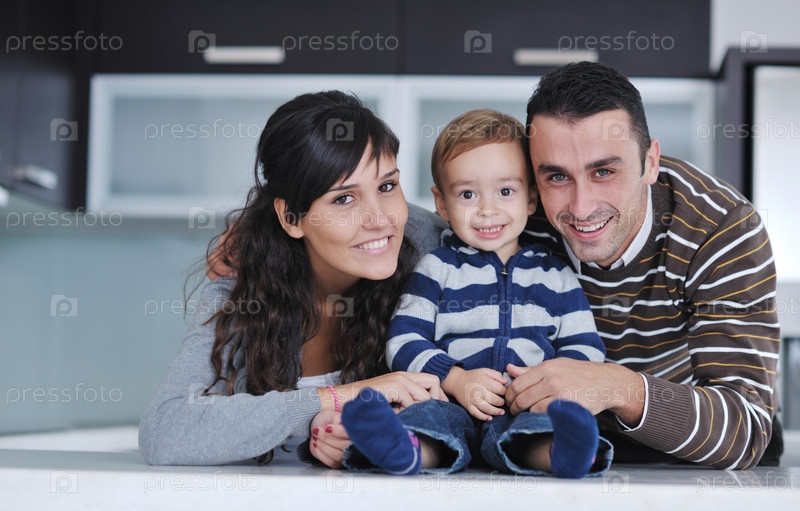 Счастливая молодая семья отдыхает в новом доме