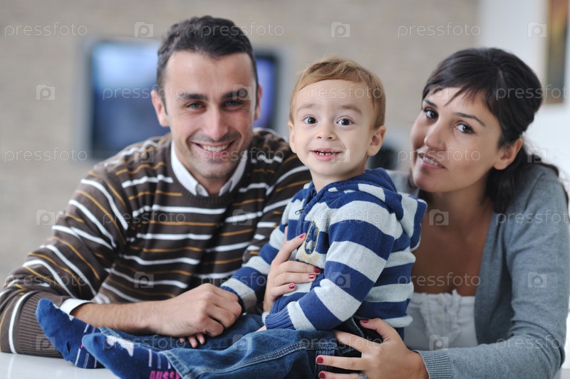 Счастливая молодая семья отдыхает в новом доме