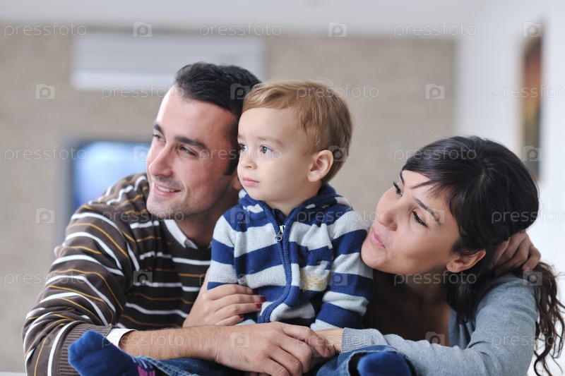 Счастливая молодая семья отдыхает в новом доме