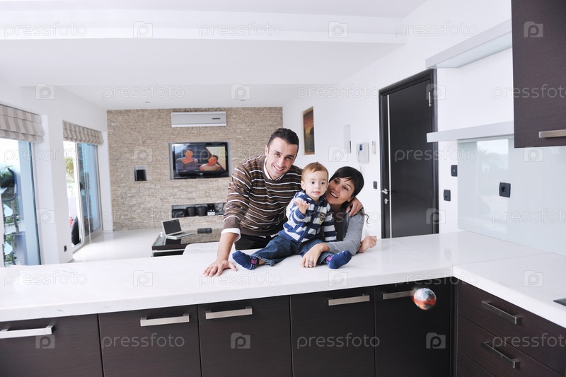 Счастливая молодая семья отдыхает в новом доме