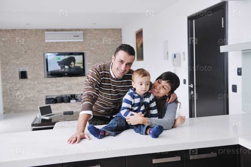 Счастливая молодая семья отдыхает в новом доме