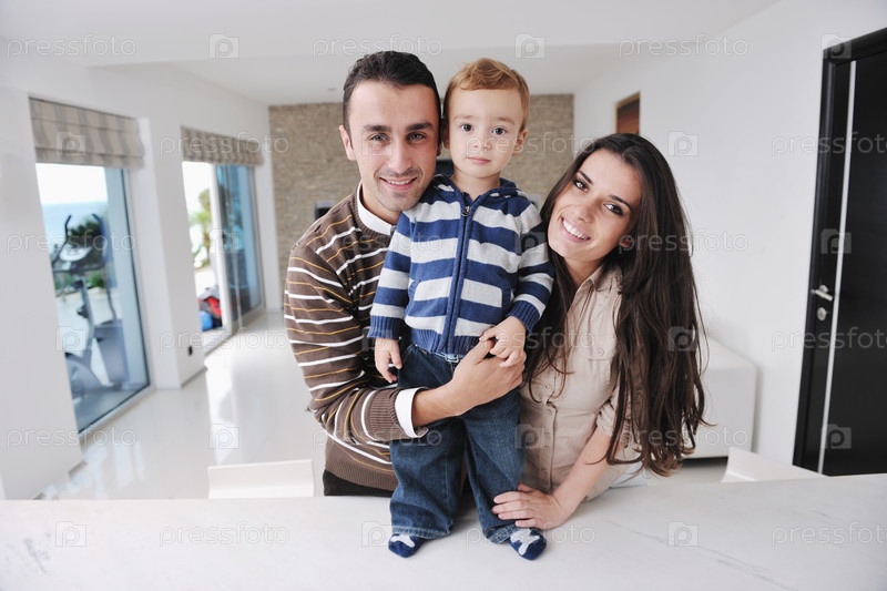 Счастливая молодая семья отдыхает в новом доме