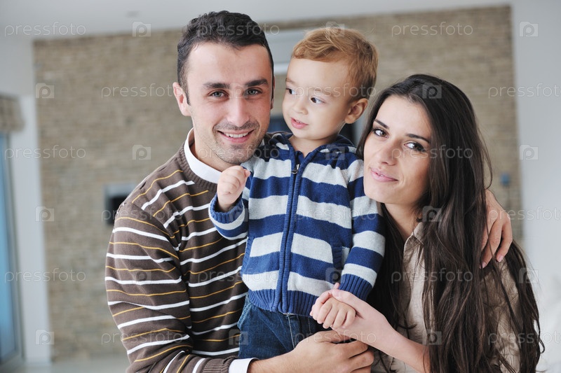 Счастливая молодая семья отдыхает в новом доме