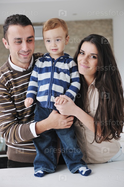 Счастливая молодая семья отдыхает в новом доме