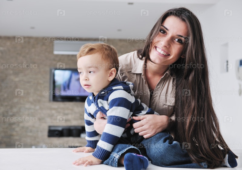 Счастливая молодая мать с сыном в домашней обстановке