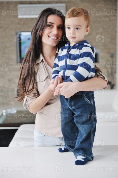 Счастливая молодая мать с сыном в домашней обстановке