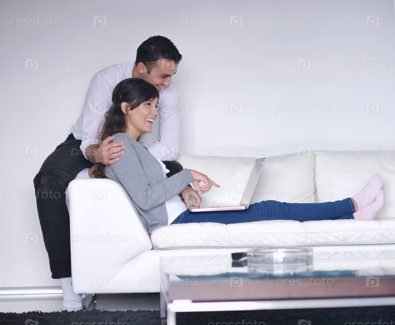 Молодая пара с ноутбуком в домашней обстановке