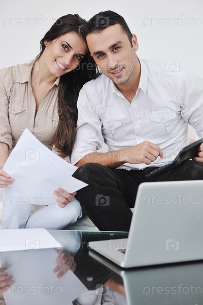 Молодая пара с ноутбуком работает в домашней обстановке
