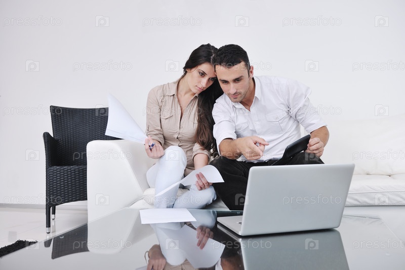 Молодая пара с ноутбуком работает в домашней обстановке