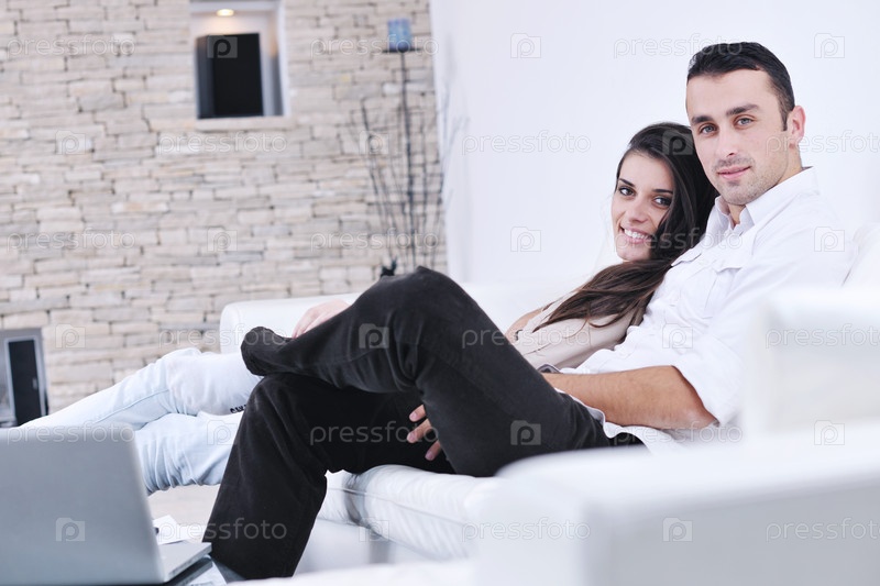 Молодая пара в современной гостиной