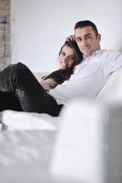 Молодая пара в современной гостиной