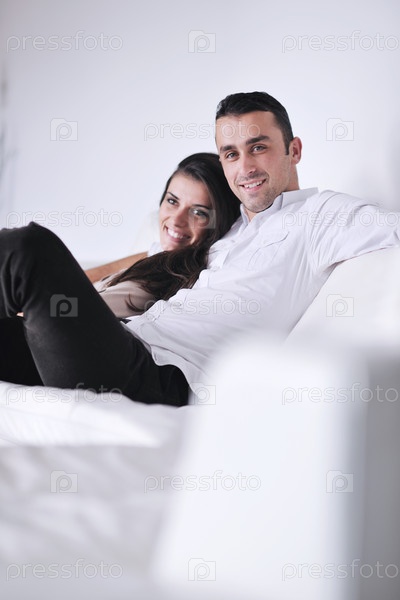 Молодая пара в современной гостиной