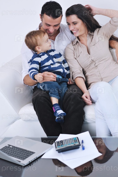Счастливая молодая семья в гостиной