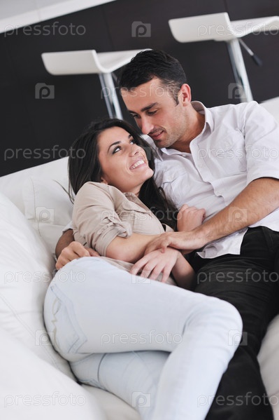 Молодая пара отдыхает в домашней обстановке