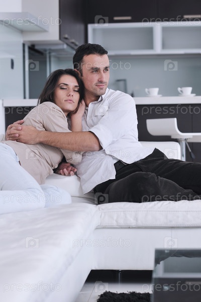 Молодая пара отдыхает в домашней обстановке