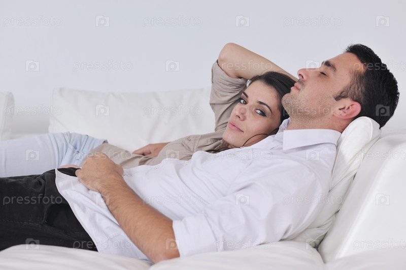 Молодая пара отдыхает дома в гостиной