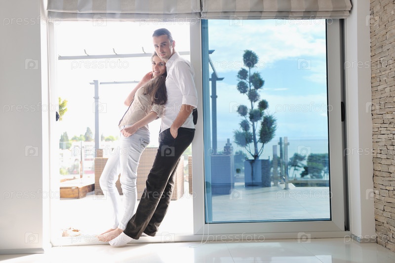 Молодая пара в современной гостиной