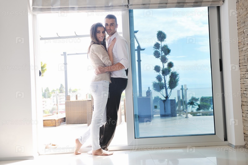 Молодая пара в современной гостиной