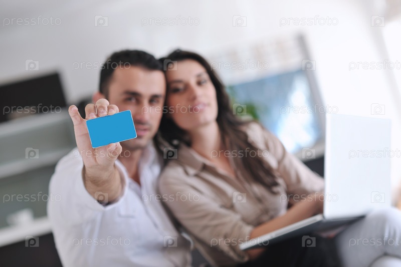 Молодой человек показывает свою кредитную карту