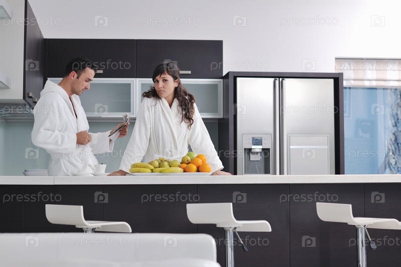 Молодая пара утром на кухне
