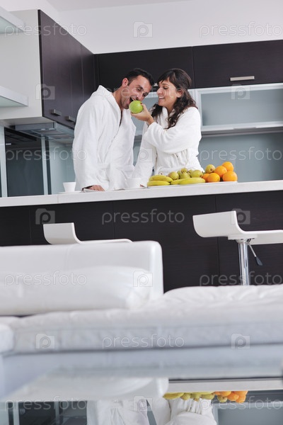 Молодая пара утром на кухне