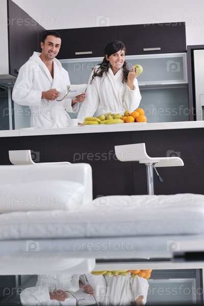 Молодая пара утром на кухне