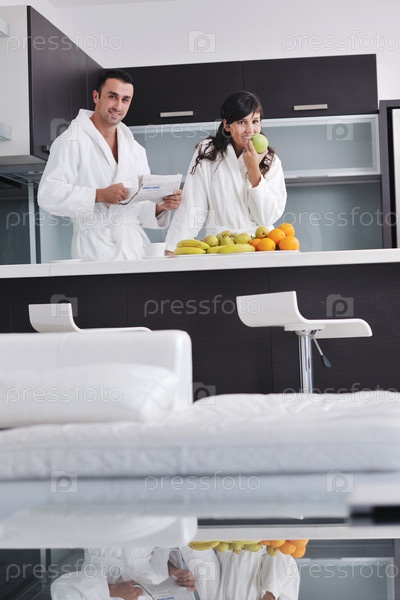 Молодая пара утром на кухне