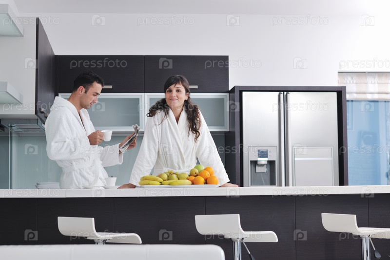 Молодая пара утром на кухне