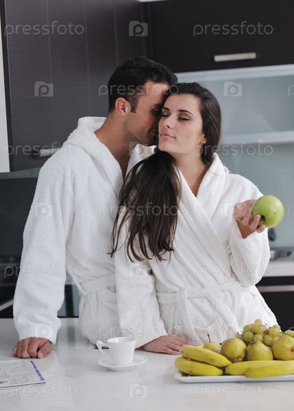 Счастливая молодая пара на современной кухне