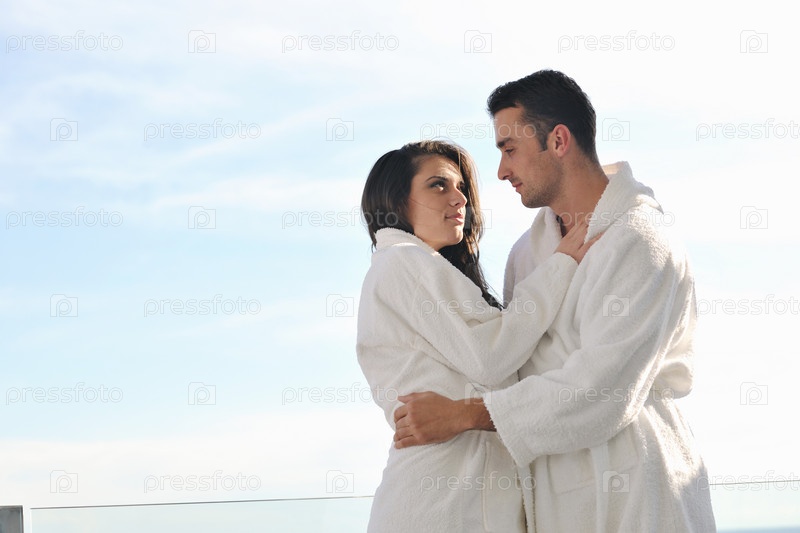 Счастливая молодая пара на балконе