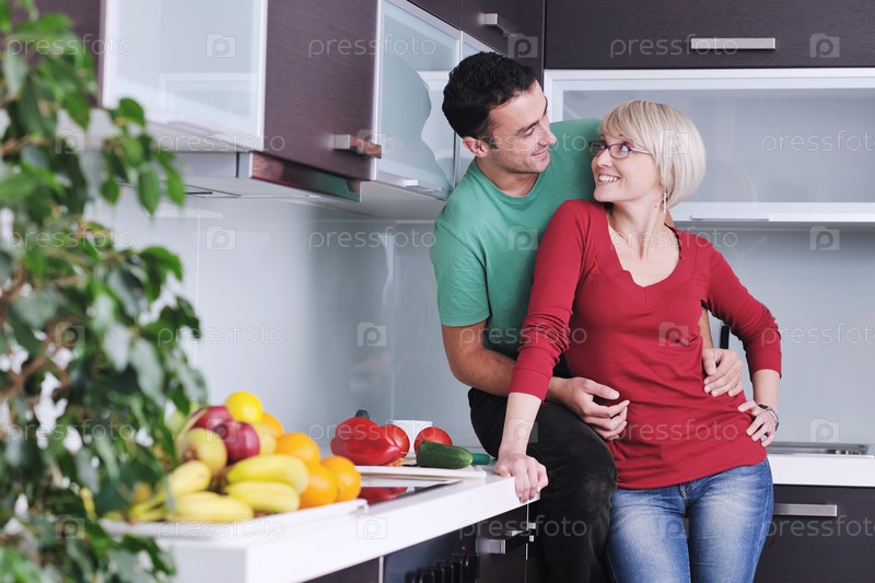 Счастливая молодая пара на кухне